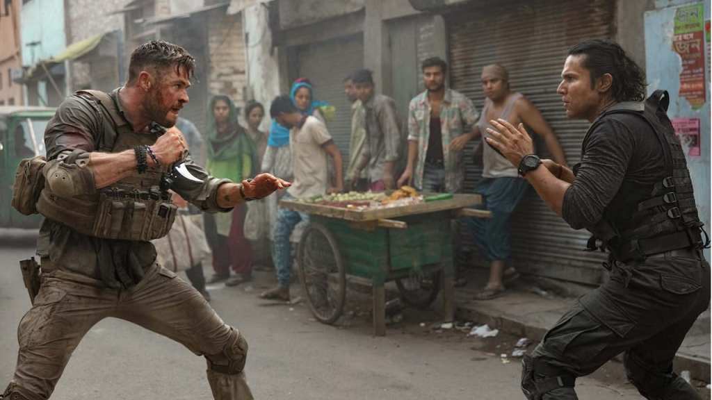 Lo menos importante del film es la historia, pero aunque no importe está presente. Hemsworth interpreta a Tyler Rake, un mercenario con evidentes deseos de muerte tras perder a un hijo. Cuando se le asigna extraer (la cinta en inglés se llama Extraction) al hijo adolescente de un jefe narco de medio oriente. Por supuesto se involucra más de la cuenta y aunque le piden que entregue al muchacho, su remordimiento lo transforma eventualmente en su protector.