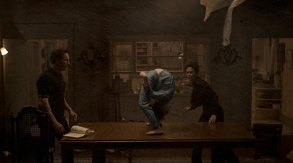 Esta tercera parte no lleva la firma de James Wan en la dirección, y eso se nota en el pulso narrativo de la historia. Michael Chaves, el realizador encargado, no tiene el mismo talento para graficar escenas de horror efectivas. Por el contrario, profundiza más en el drama y en un relato que avanza a tropezones, con mucho ruido en sub tramas innecesarias que se hace pesado. A diferencia de sus entregas anteriores aquí no hay tensión, pero si mucho tedio.