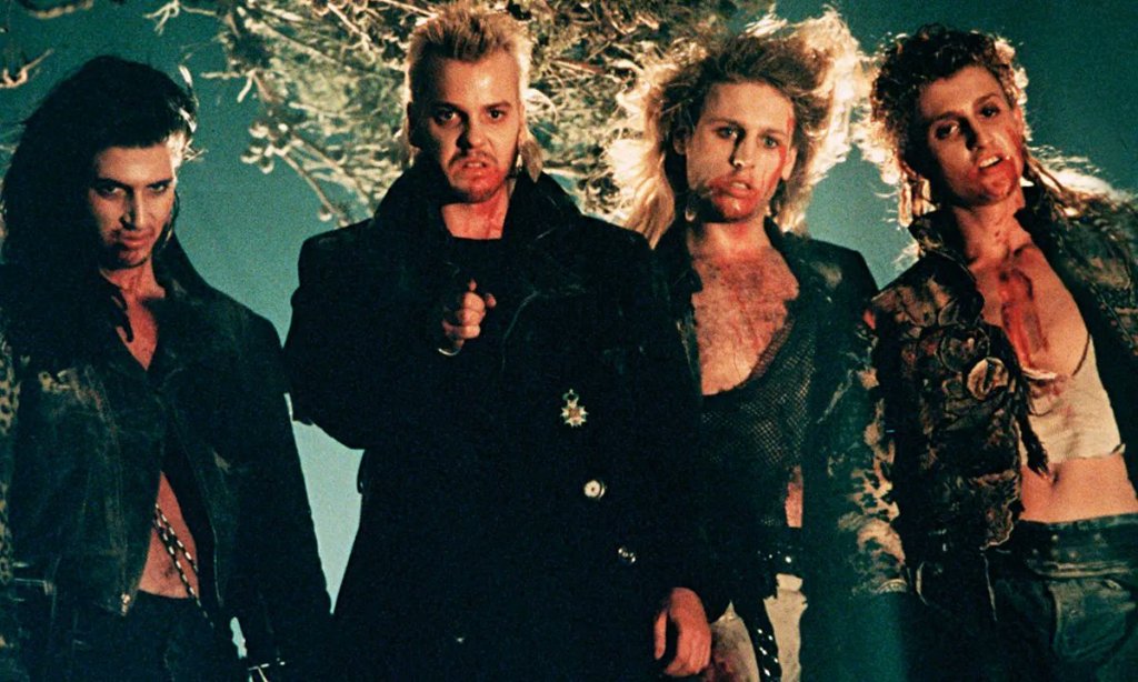 Tras el divorcio de su madre, Michael y Sam viajan de Phoenix Arizona a Santa Carla California para vivir con su abuelo un lugar que en apariencia es apacible y aburrido que no merecería mucho la pena de no ser porque está habitado por una banda de vampiros y que se alimentan de todo aquel que se cruce en su camino. Hasta aquí, The Lost Boys suena a una película común de vampiros. Pero de hecho es una historia que iba en contra de las normas sociales de la época, con un soundtrack increíble, y personajes bastante interesantes.