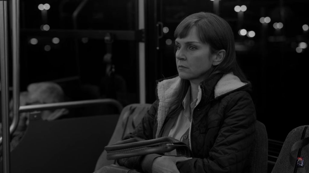 Kim aparece por primera vez en el presente, es decir en la realidad en blanco y negro, con pelo más largo y oscuro, viviendo una vida totalmente opuesta a la que tenía con Jimmy/Saul. Con nueva pareja y nuevo trabajo, sumergida en la mediocridad. Atrás quedó su necesidad de “más”. Su modo de pagar sus pecados es vivir la vida más insípida imaginable.