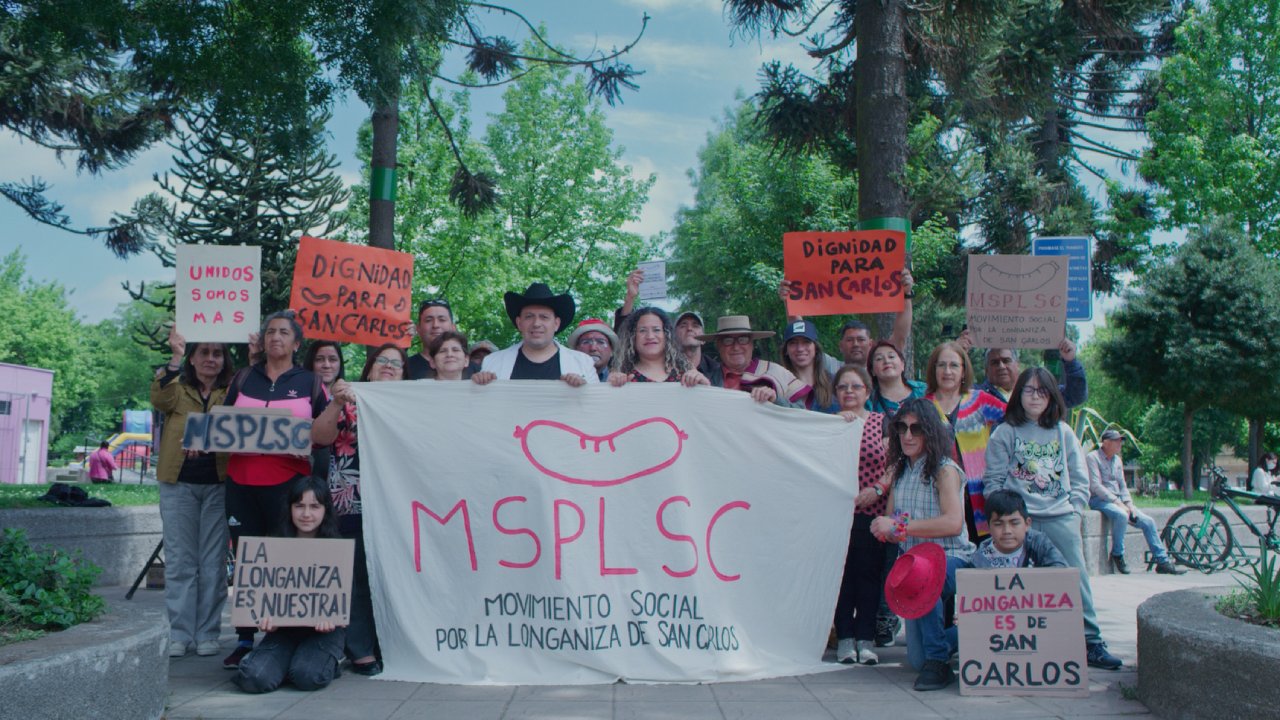 La película gira en torno a un grupo de habitantes de San Carlos, en la región de Ñuble, quienes emprenden una campaña para obtener la denominación de origen de su longaniza local, después de perder el título ante Chillán. La premisa es absurda, pero su ejecución es desgarradoramente real. Utilizando personas reales en lugar de actores profesionales, Alzamora construye un relato que articula con precisión las tensiones culturales, sociales y emocionales del Chile post-estallido.